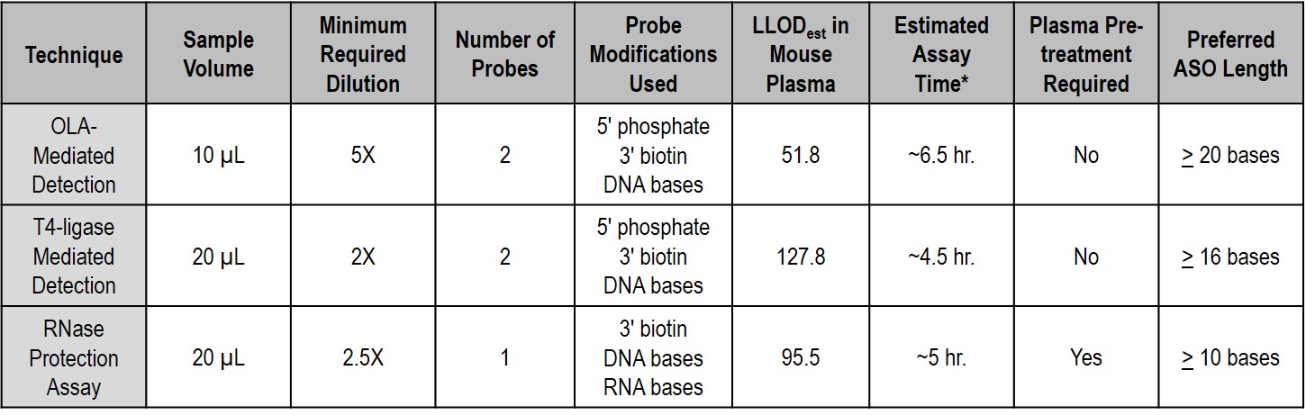 * Assay time could potentially be shortened with further optimization for specific ASO